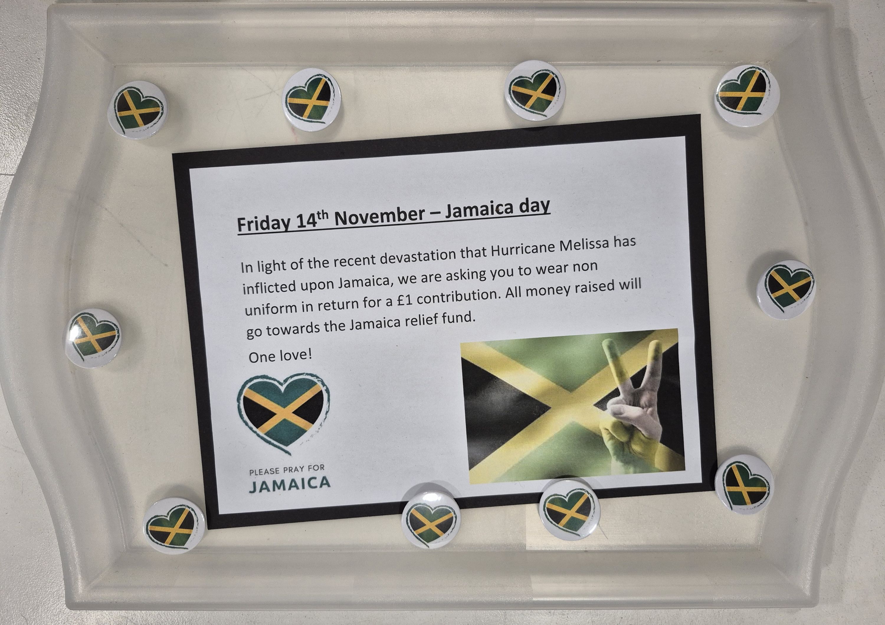 The school was decorated with Jamaican flags, and we all sported Jamaican flag badges. The students also enjoyed a Caribbean lunch.